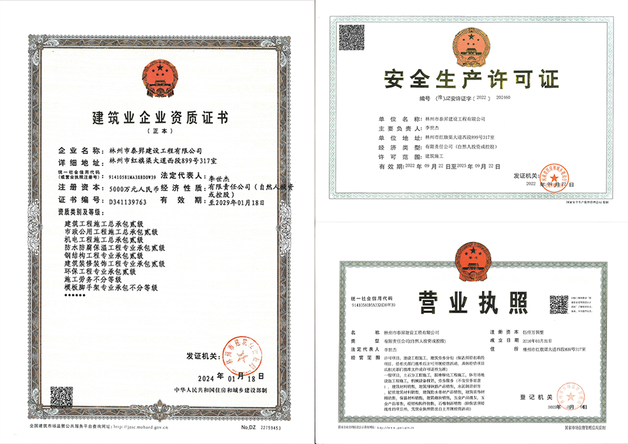 林州市泰昇建設(shè)工程有限公司始于1980年初,正式成立于2016年3月1日,注冊資金5000萬元,公司地址位于著名的“建筑之鄉(xiāng)”河南省林州市,是林州人創(chuàng)立的一家有著四十多年發(fā)展底蘊的專業(yè)化、標準化建筑工程公司。 公司現(xiàn)有員工376人,各類專業(yè)技術(shù)人員89人,其中一級建造師6人,二級建造師18人,擁有中高級職稱的工程技術(shù)和工程管理人員27人,初級技術(shù)管理人員38人。 “精細管理、精準經(jīng)營,精益求精打造精品工程;為人樸實、工作扎實,踏踏實實做實企業(yè)發(fā)展。”這是泰昇人在艱苦的創(chuàng)業(yè)過程中磨礪出來的企業(yè)性格。